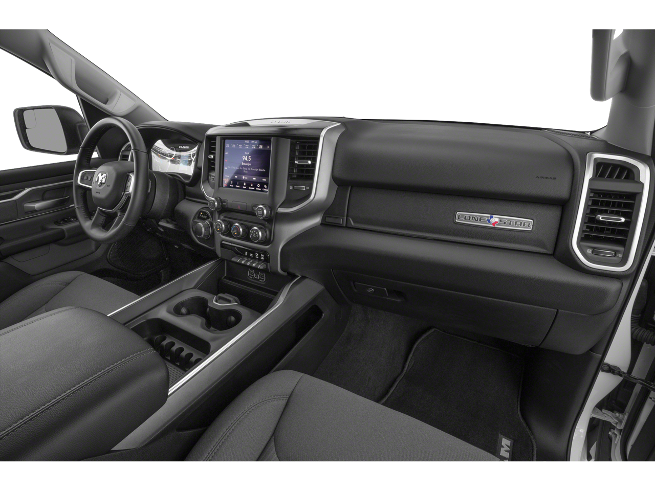 QUICK ORDER PACKAGE 25Z BIG HORN/LONE STAR -inc: Engine: 5.7L V8 HEMI MDS VVT, Transmission: 8-Speed Automatic (8HP75), Steering Wheel Mounted Audio Controls, BLACK APPEARANCE PACKAGE -inc: Tires: 275/55R20 OWL All Season, Exterior Mirrors w/Supplemental Signals, Black Headlamp Bezels, Power Heated Fold-Away Mirrors, Body Color Door Handles, Exterior Mirrors Courtesy Lamps, Auto Dim Exterior Driver Mirror, Black Exterior Truck Badging, Exterior Mirrors w/Memory, Grille B/Color Outline 1 Texture 2, Black Interior Accents, Dual Exhaust w/Black Tips, Power-Folding Mirrors, Body Color Front Bumper, Wheels: 20" x 9" Cast Aluminum Black, Body Color Rear Bumper w/Step Pads , SINGLE DISC REMOTE CD PLAYER, REMOTE START SYSTEM, RADIO: UCONNECT 4 W/8.4" DISPLAY, PREMIUM LIGHTING GROUP -inc: Front LED Fog Lamps, LED Reflector Headlamps, LED Taillamps, PARKSENSE FRONT/REAR PARK ASSIST W/STOP, GVWR: 7,100 LBS, ENGINE: 5.7L V8 HEMI MDS VVT -inc: Active Noise Control System, 180 Amp Alternator, Heavy Duty Engine Cooling, GVWR: 7,100 lbs, Dual Rear Exhaust w/Bright Tips, Hemi Badge, DIAMOND BLACK CRYSTAL PEARLCOAT.