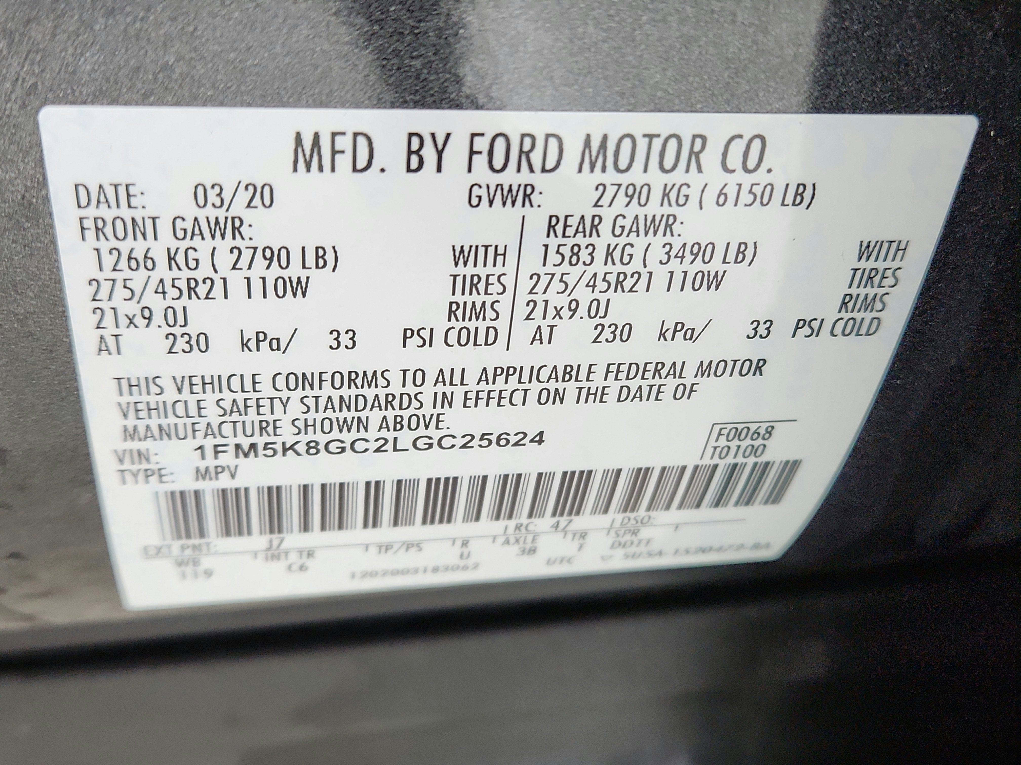 - Front Tire Size: P255/55VR20
