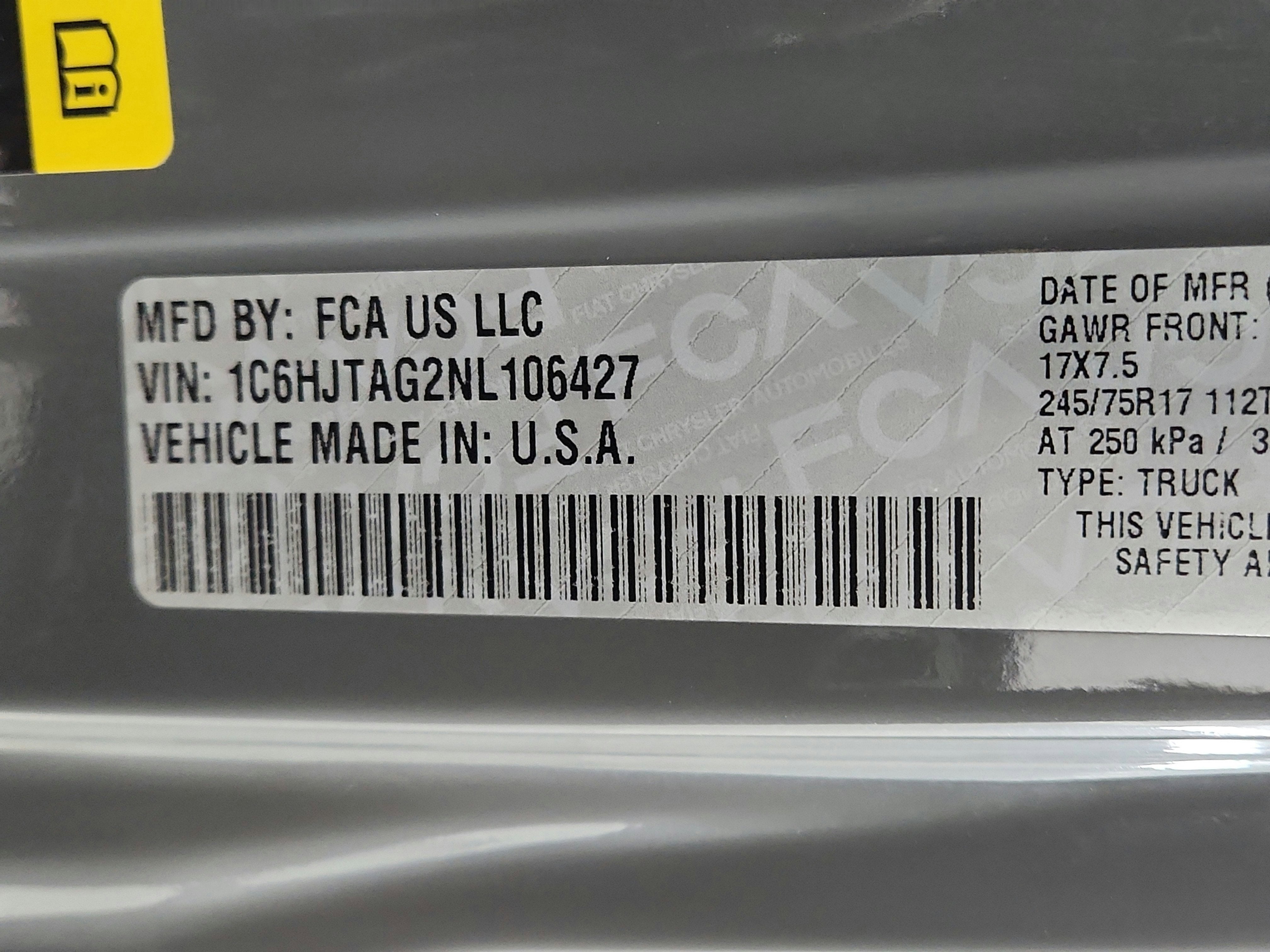 - Front Tire Size: P245/75SR17