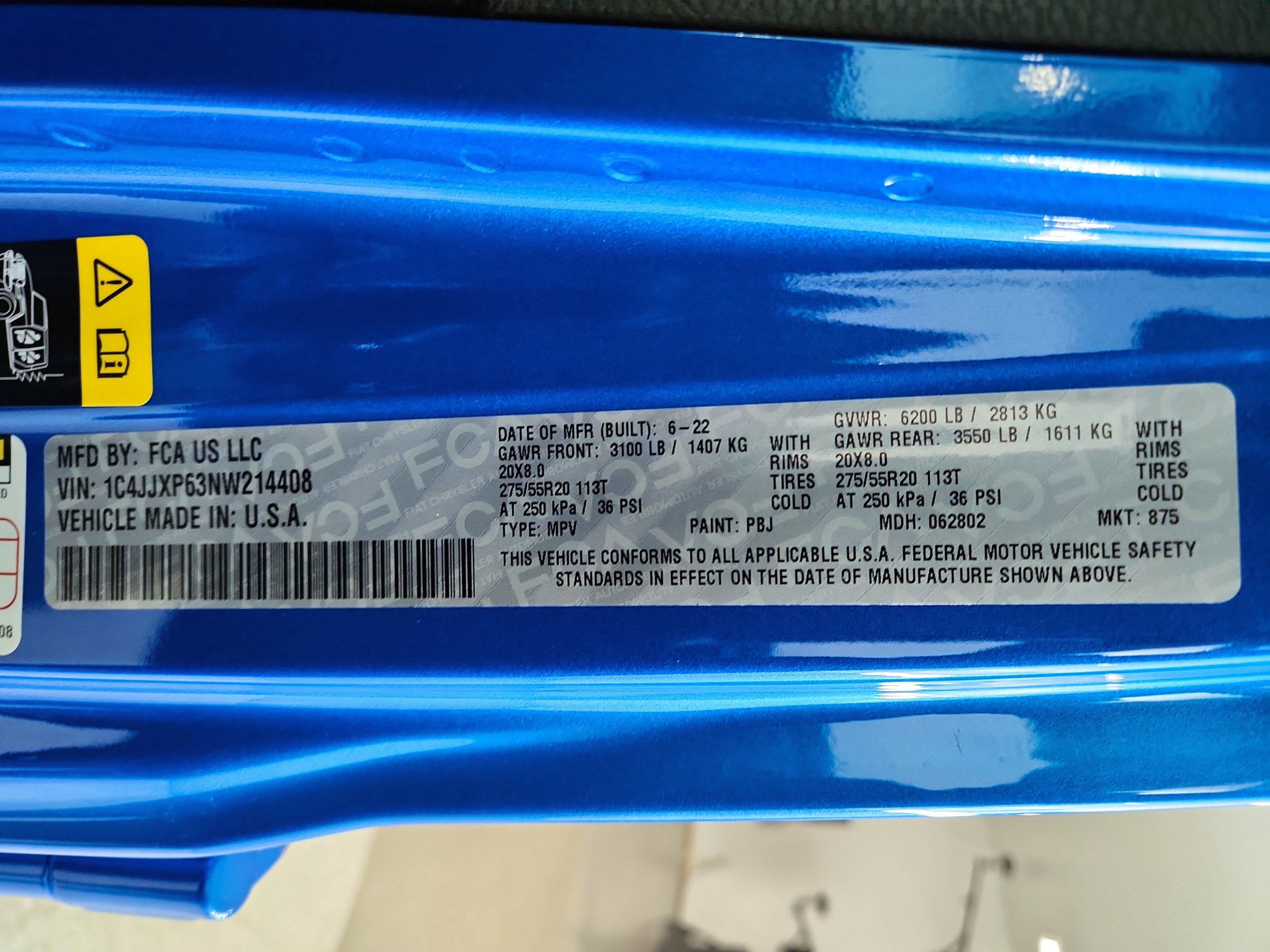 QUICK ORDER PACKAGE 29P -inc: Engine: 2.0L I4 DOHC DI Turbo PHEV, Transmission: 8-Speed Auto 8P75PH PHEV , MOPAR ALL-WEATHER FLOOR MATS, HYDRO BLUE PEARLCOAT, FRONT LICENSE PLATE BRACKET, ENGINE: 2.0L I4 DOHC DI TURBO PHEV (STD), COLD WEATHER GROUP -inc: Heated Steering Wheel, Remote Start System, Heated Front Seats, BLACK, PREMIUM MCKINLEY TRIMMED SEATS, BLACK 3-PIECE HARD TOP -inc: Freedom Panel Storage Bag, Rear Window Defroster, Rear Window Wiper/Washer, No Soft Top, Wheels: 20" x 8" Fully Painted Aluminum, Voice Activated Dual Zone Front Automatic Air Conditioning.