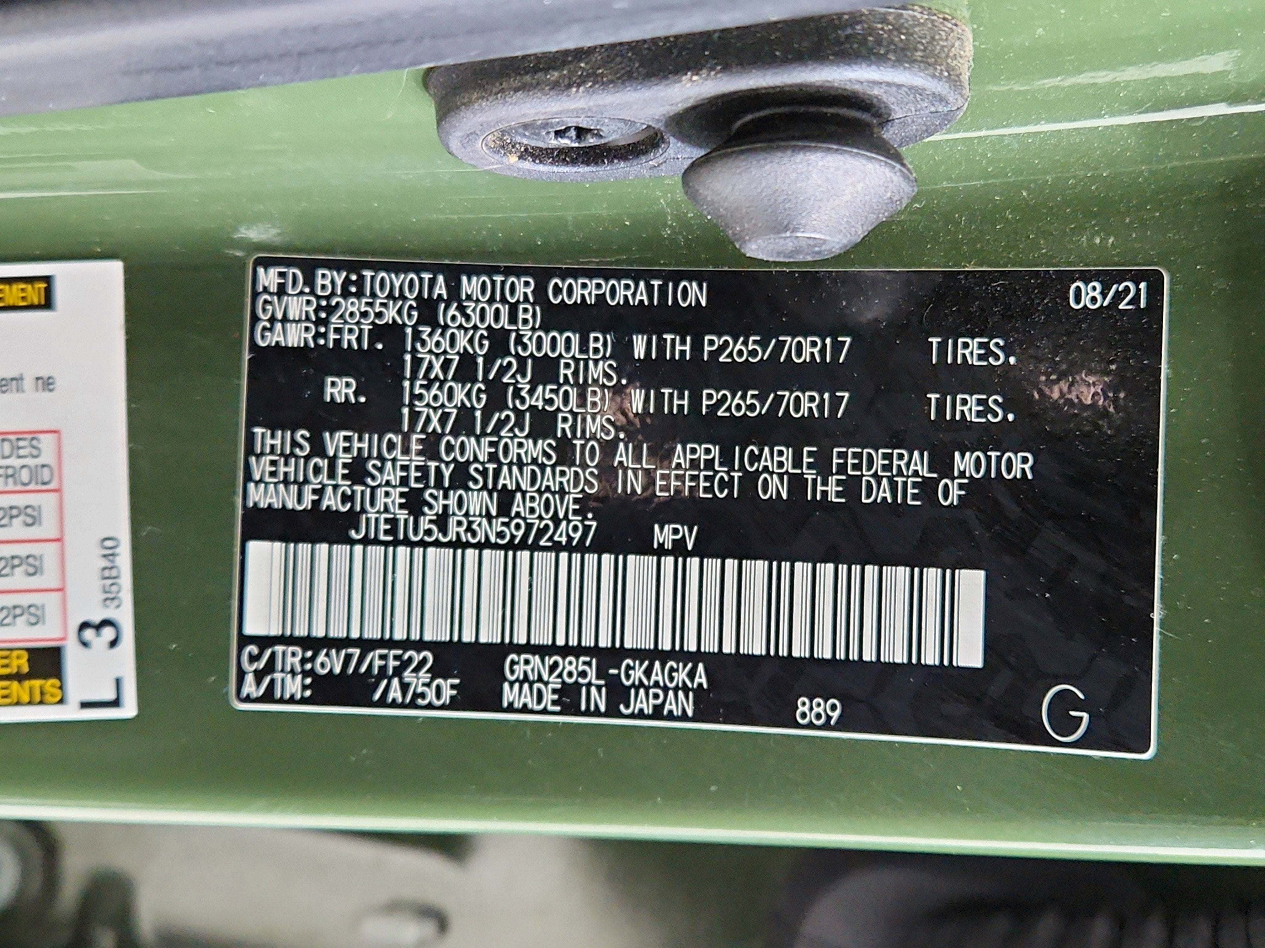 Valet Function, Trip Computer, Transmission: 5-Speed ECT Automatic, Transmission w/Sequential Shift Control and Oil Cooler, Trailer Wiring Harness, Tracker System, Toyota Safety Sense P (TSS-P), Tires: P265/70R17 Mud & Snow, Tailgate/Rear Door Lock Included w/Power Door Locks, Steel Spare Wheel.