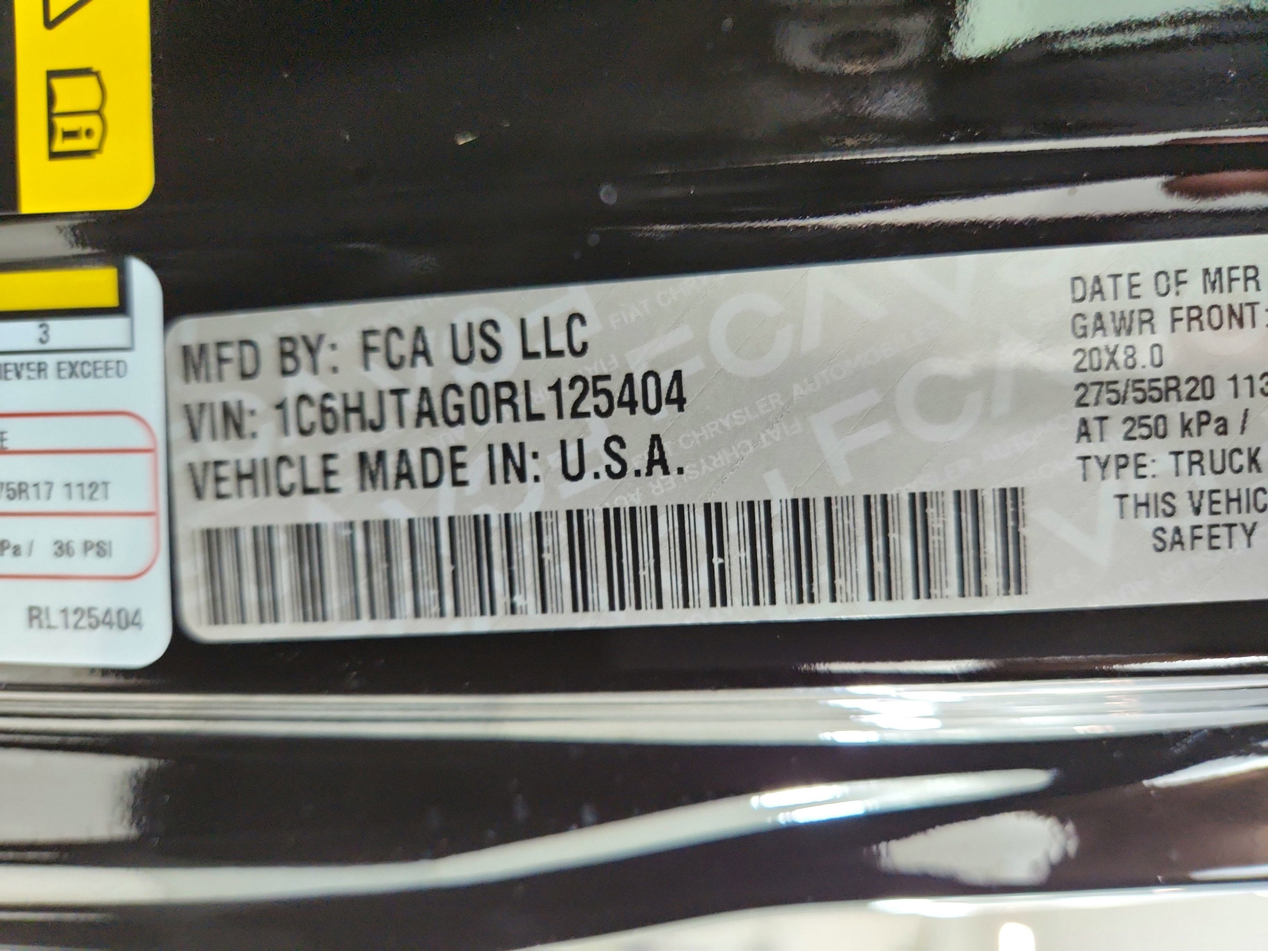 - Wheels: 20" x 8" Painted Black Aluminum