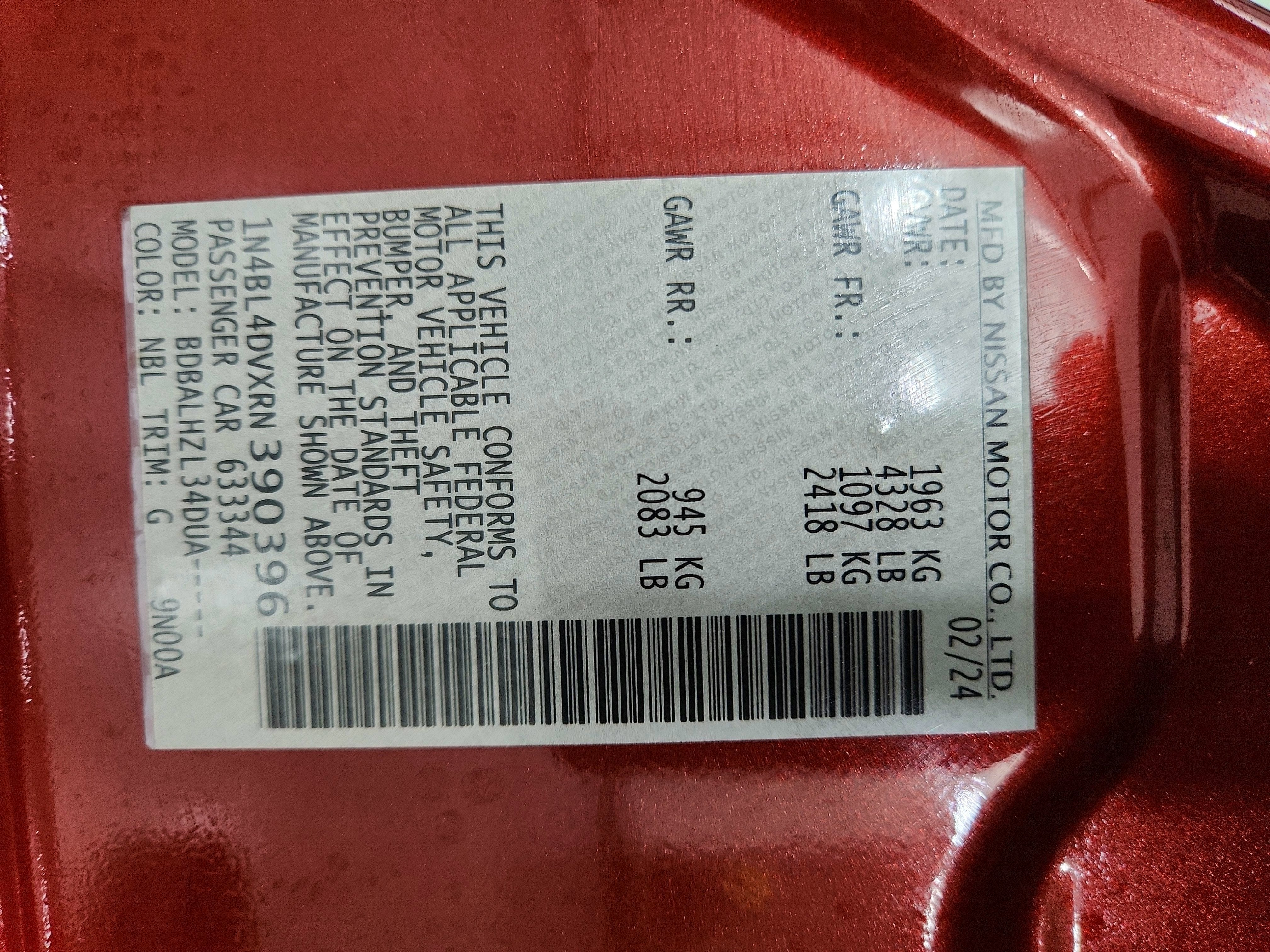 - Vehicle Name: Nissan Altima