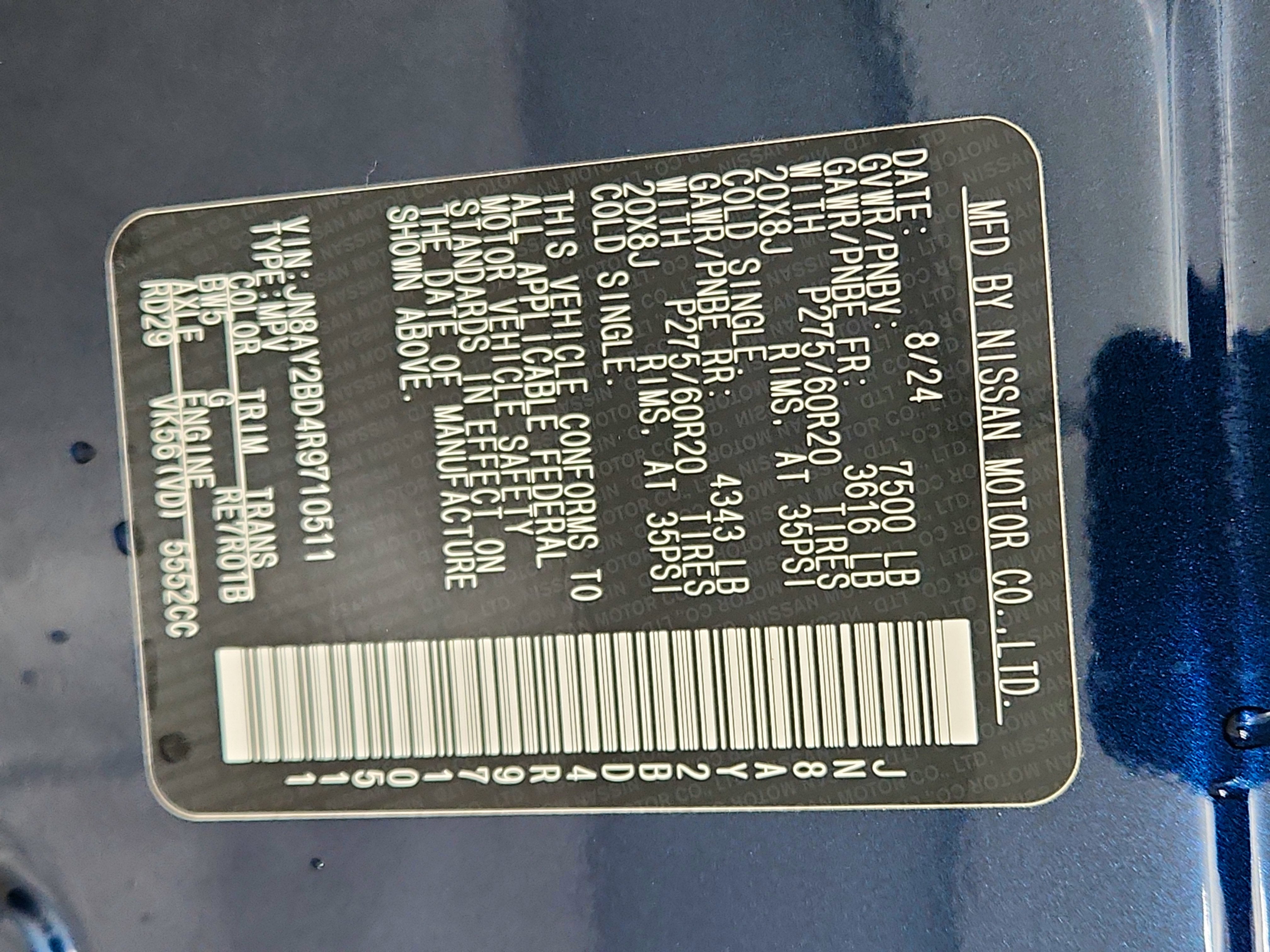 [M92] CARGO PACKAGE -inc: cargo area protector, cargo net and first aid kit , [L92] 3RD ROW CARPETED FLOOR MATS - BENCH SEAT -inc: carpeted cargo mat, [H92] NISSAN USB CHARGING CABLE SET, Wireless Phone Connectivity, Window Grid Diversity Antenna, Wheels: 20" x 8J Painted Alloy -inc: 18-spoke, Machined finish, Valet Function, Trunk/Hatch Auto-Latch, Trip Computer, Transmission: 7-Speed Automatic.